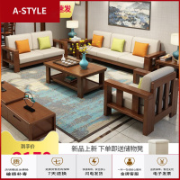 苏宁放心购中式实木沙发组合简约现代客厅木加布沙发农村经济型木质家具套装A-STYLE家具