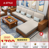 苏宁放心购实木沙发组合现代中式冬夏两用小户型转角贵妃沙发客厅整装家具A-STYLE家具