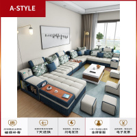 苏宁放心购新款布艺沙发 多功能大户型现代客厅家具冬夏两用U型组合乳胶沙发A-STYLE家具