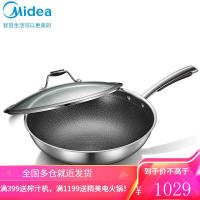 美的(Midea)炒锅32CM不粘锅少油烟炒菜316L不锈钢双面蜂窝平底炒菜锅 燃磁通用 不花芯系列 CJ32Wok50