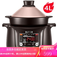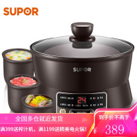 苏泊尔电炖锅家用电砂锅熬煲汤锅智能全自动煮粥神器陶瓷燕窝炖盅4L 黑色+咖色4L
