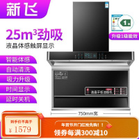 新飞油烟机7字型抽油烟机家用厨房大吸力顶侧双吸油烟机自动清洗 高配750宽八键大屏体感+自动清洗 全国联保安装