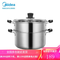 Midea/美的家用304不锈钢蒸锅蒸煮汤锅馒头包子双层蒸笼明火电磁炉通用不锈钢蒸锅ZG26G03 24cm 双层304