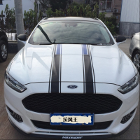 福特新蒙迪欧福克斯三厢福睿斯汽车身贴纸腰线个性划痕改装饰拉花 只要机盖贴(黑+蓝) 抖音