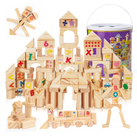 纽奇(Nukied)儿童木质积木玩具益智拼装大颗粒积木男孩女孩3-6岁生日礼物手提桶装 原木数字字母110件套