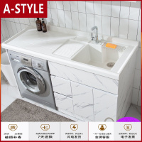 苏宁放心购阳台实木洗衣柜组合带搓板高低洗衣池洗衣台浴室柜石英石洗衣机柜A-STYLE