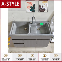 苏宁放心购人造石英石盆洗衣柜双盆带搓板阳台不锈钢浴室柜洗衣池洗衣台盆柜A-STYLE