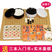 五子棋子儿童学生初学者盒装围棋棋盘成人闪电客围棋(黑白)黑白棋子象棋套装 200粒五子棋+象棋+送书 加厚15线木棋盘