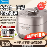 美的(Midea)电压力锅 8分钟一道菜 家用5L IH猛火1600W顶置触控 自动排气 双钢胆MY-S5879K