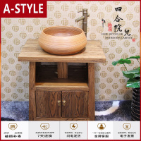 苏宁放心购实木落地仿古小户型台上盆老榆木复古中式浴室柜组合洗脸柜洗漱台A-STYLE
