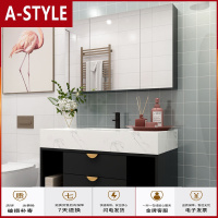 苏宁放心购岩板浴室柜组合现代轻奢洗手盆柜北欧大理石洗漱台智能镜卫浴柜A-STYLE