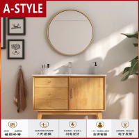 苏宁放心购北欧实木浴室柜组合简约落地柜日式原木色小户型卫生间洗漱台盆柜A-STYLE
