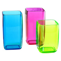 欧润哲(ORANGE)大蓝大绿中玫红漱口杯子塑料刷牙杯洗漱杯高透方杯水杯情侣家庭三件套装301012