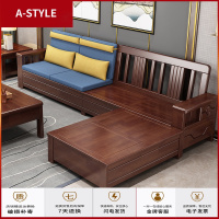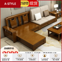 苏宁放心购新中式实木沙发冬夏两用小户型转角布艺现代简约客厅储物组合沙发A-STYLE家具