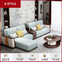 苏宁放心购现代中式实木沙发123组合乌金木新德式轻奢转角沙发茶几组合A-STYLE家具