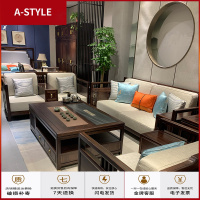 苏宁放心购新中式全实木沙发布艺组合客厅现代禅意黑檀木别墅大户型会所家具A-STYLE家具