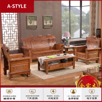 苏宁放心购实木沙发小户型客厅组合家具新中式经济型仿古花全实木组装沙发A-STYLE家具