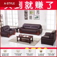 苏宁放心购真皮办公室沙发茶几组合 办公家具 现代简约 商务三人位接待沙发A-STYLE家具