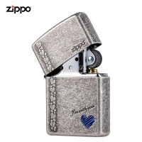美国zippo正版之宝复古防风打火机仿古银蓝心zippo情人节礼物