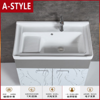 苏宁放心购太空铝洗衣柜陶瓷洗衣盆带搓衣板阳台落地浴室柜洗衣池洗脸盆台盆A-STYLE