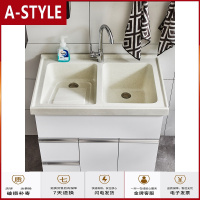 苏宁放心购落地式人造石双盆阳台洗衣柜带搓衣板浴室柜太空铝洗衣池洗漱台A-STYLE