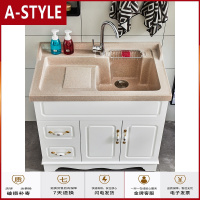 苏宁放心购新款人造石英石盆欧式阳台洗衣柜实木带搓衣板浴室柜洗衣盆洗衣池A-STYLE