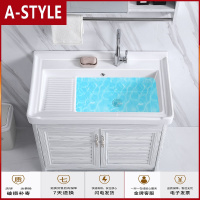 苏宁放心购阳台太空铝洗衣柜陶瓷洗手台盆落地式组合柜带搓衣板浴室柜洗脸盆A-STYLE