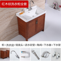 陶瓷洗衣池太空铝浴室柜洗衣盆带搓板水槽阳台落地式一体台盆 红木纹90带搓衣板[全套含龙头] 抖音