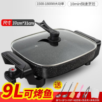 韩式烤肉盘电烤盘多功能一体电热锅火锅锅烧烤涮烤家用烤鱼炉 双管加厚9L麦饭石[汤漏勺木铲硅胶刷食品夹油纸20张]