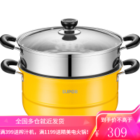 苏泊尔(SUPOR)蒸锅304不锈钢26cm双层加厚大容量家用复底二层蒸笼EZ26BS08 28CM黄色[带碗碟夹+蒸布