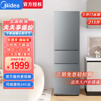 美的(Midea)225升三门三温节能省电租房小户型家用大容量变温保鲜小冰箱MR-225TE钛钢灰-星烁