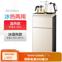 美菱茶吧机立式冷热家用多功能智能全自动上水下置水桶饮水机 钛白金:双壶双门+旋转水龙头 冰温热