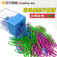 齐心B2207彩色磁性回形针盒1盒 自带80枚彩色回形针曲别针 颜色随机