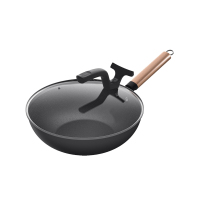 美的喆物炒锅不粘锅麦饭石涂层燃磁通用防烫手柄烹饪炒菜可立锅盖 黑色