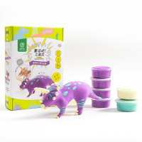 若态若小贝恐龙黏土 超轻粘土橡皮泥无毒手工彩泥太空泥儿童立体拼插拼图恐龙模型玩具 FY05三角龙