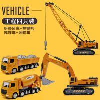 大号仿真儿童工程车玩具大吊车起重机挖掘机塔吊合金模型男孩套装 合金折叠吊车+挖掘机+搅拌机+运输车
