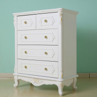 淮木欧式实木五斗柜卧室储物柜客厅简约现代三四五六斗雕花收纳柜大五斗描银长80宽40高100(象牙白)