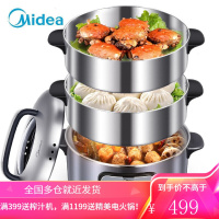 [银灰色] 美的家用电蒸锅大容量多功智能蒸馒头不锈钢三层电蒸笼蒸汽海鲜锅