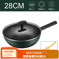 九阳麦饭石不粘锅炒锅家用炒菜锅电磁炉煤气灶燃气灶适用平底锅具 高级绿--28CM