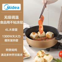 美的电火锅家用多功能一体不粘锅电热电炒锅电煮锅韩式 2-4-6人 金色 4L