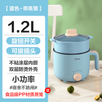 美的电煮锅学生宿舍家用多功能电炒锅一体不粘锅煮面小型电热火锅 1.2L冰川蓝-不粘锅+蒸格