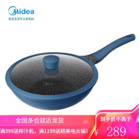 美的/Midea麦饭石色不粘锅压铸锅炒锅水波纹蓝平底家用煤气灶电磁炉专用煎炒菜锅CG28W3-003