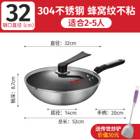 32cm炒锅+铲子 炊大皇不粘锅炒锅家用304不锈钢炒菜锅电磁炉煤气灶专用平底锅具