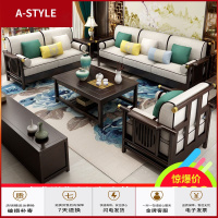 苏宁放心购实木沙发小户型客厅组合家具新中式经济型仿古花全实木组装沙发A-STYLE家具