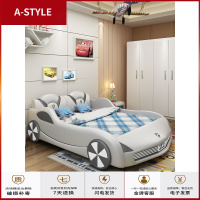 苏宁放心购儿童床男孩单人床车造型拼接床卡通房床赛车小孩床车子型汽车床皮A-STYLE家具