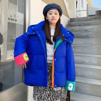 时尚撞色针织袖女式宽松面包服棉衣冬季蓬松连帽棉服保暖外套