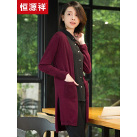 恒源祥针织开衫女中长款2018新款春秋含羊毛针织衫外搭毛衣外套女