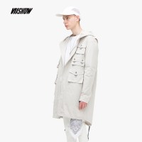 viishow潮牌冬季男士风衣中长款韩版潮流外套男潮连帽大衣
