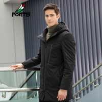 FORTEI富铤 羽绒服男中长款加厚中青年修身无绗线风衣式商务保暖潮男外套