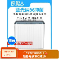 南极人双缸筒大容量洗衣机家用半自动桶迷你小型内衣租房洗脱一体 11KG[洁净洗涤+强力风干]蓝光纳米抑